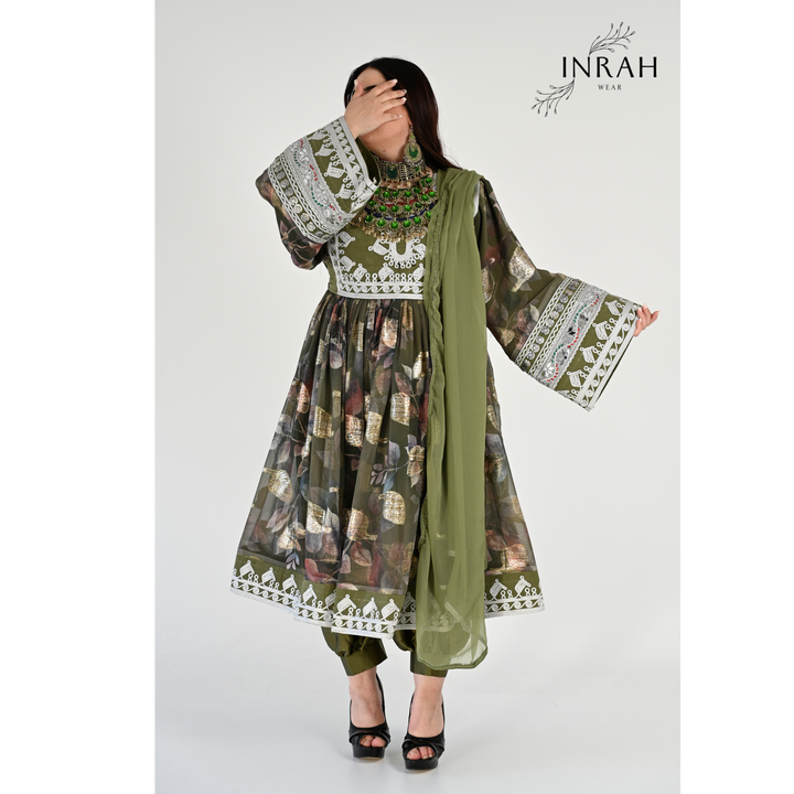 Step into culture and elegance with the Inrah Kochani Dress, a masterpiece inspired by the rich nomadic heritage of Afghanistan. This traditional Afghan Kochi dress is crafted with vibrant fabrics, intricate hand embroidery, shimmering mirror work, and timeless patterns passed down through generations.